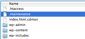 2. Localize um arquivo chamado ‘. Maintenance “(note o ponto na frente, que identifica como arquivo oculto, você precisa configurar o seu cliente de FTP para exibir arquivos ocultos)